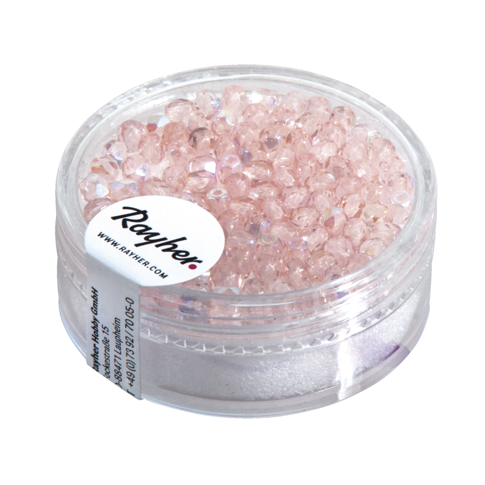 Perle facettée en verre - 3 mm ø - Irisée - Quartz rose - Boîte de 100 pièces - Rayher