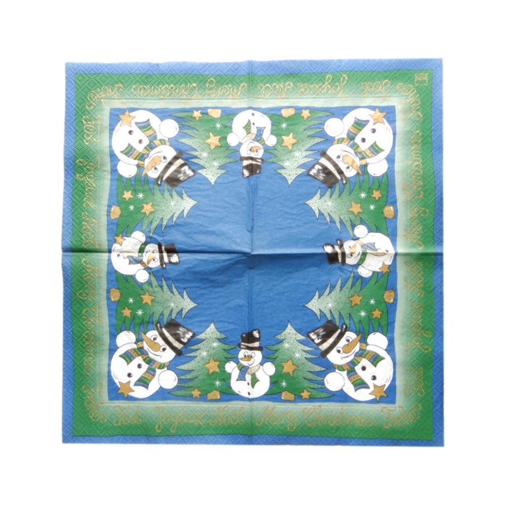 Serviette en papier - 33 cm - 1 motif - Bonshommes de neige et sapins - 5 pièces